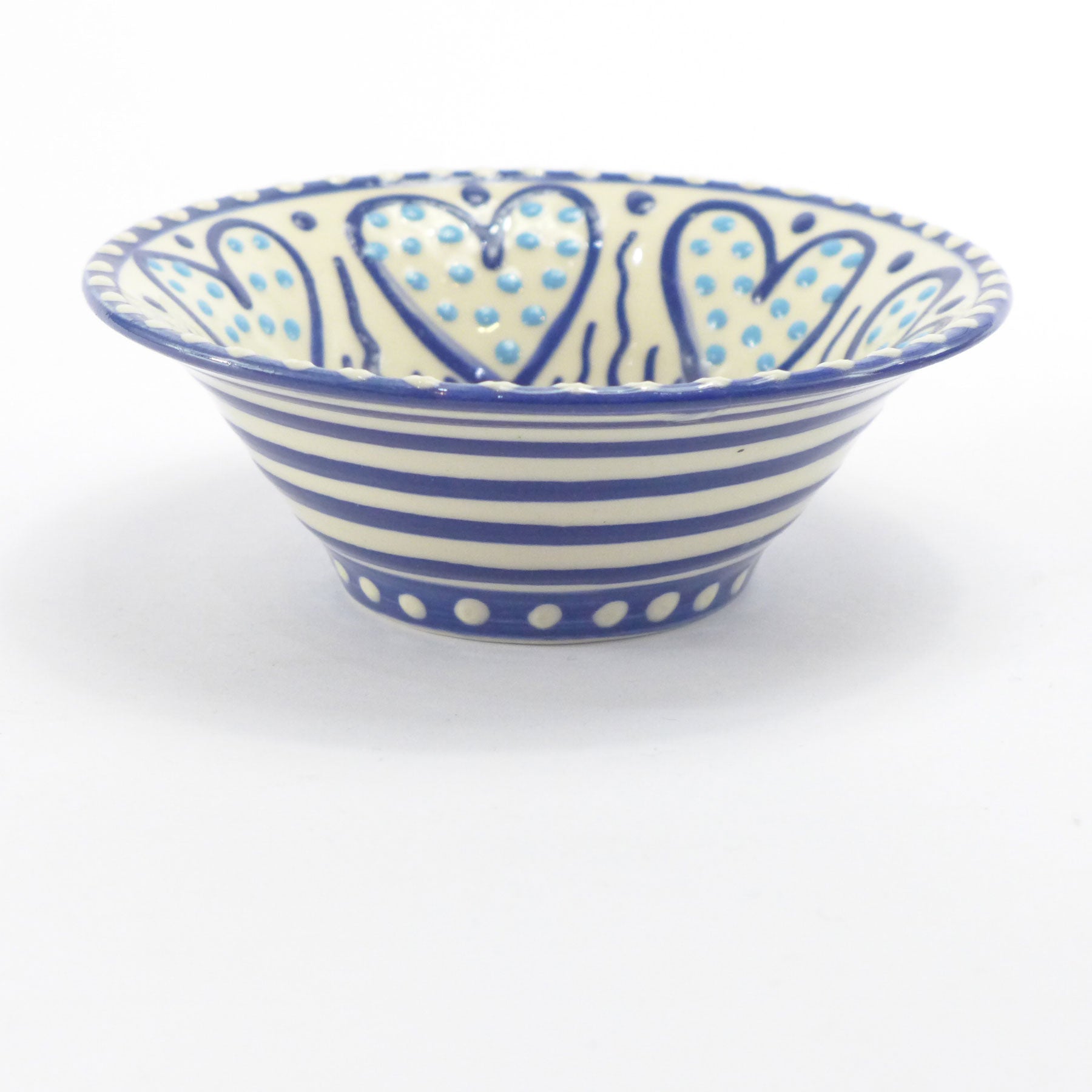 Lincoln mostly makes wheel thrown tableware which is extensively decorated employing 'slip trailing' which gives the decoration a distinctive raised surface. Colourful designs, as well as simpler blue and white designs are used to convey a sense of fun and joyousness in the work. Born and raised in a small coastal town in Australia Lincoln has travelled extensively which has informed his work as well as a keen interest in archaeology having worked on many excavations around the world he now resides in south west Cornwall.