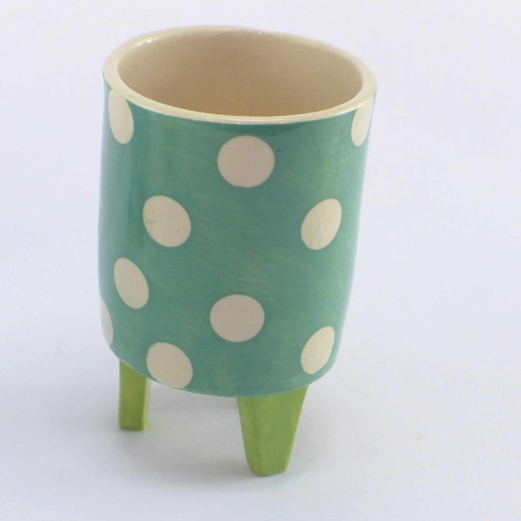 Each piece is hand built from slabs of clay and decorated using hand cut stencil decoration. I have a strong belief that Ken's work makes you happy - it's something about the legs on this planter.