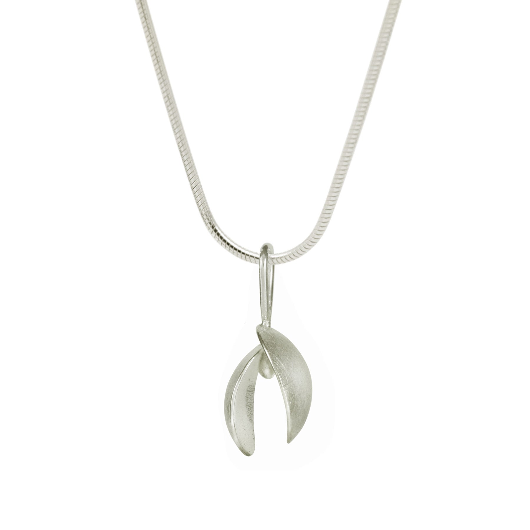 Light and delicate, this easy to wear necklace is inspired by seed pods, symbols of new life, fertility and new beginnings. Handmade from sterling Ecosilver with a lovely contemporary textured matt finish with polished edges.