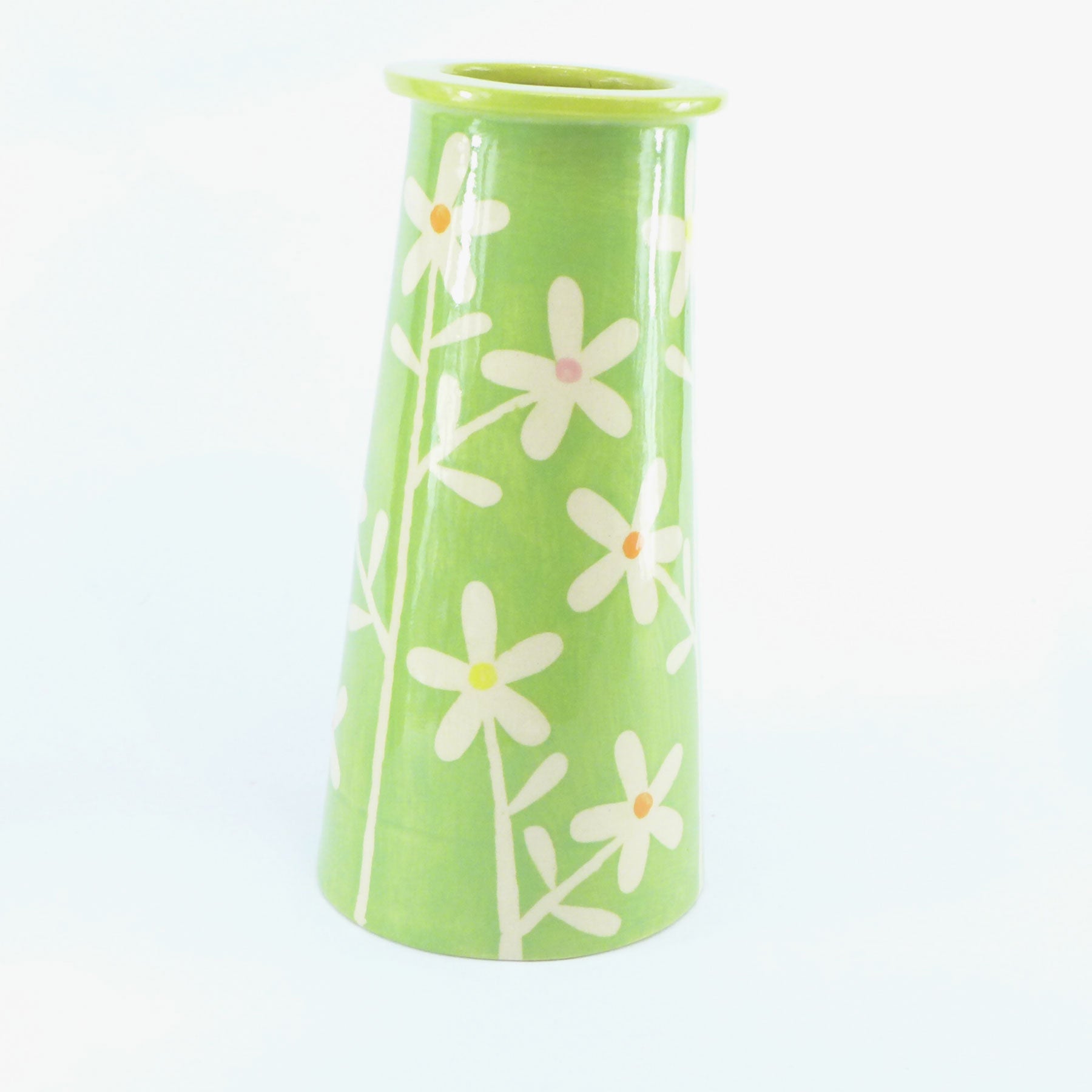 Green daisy cone vase