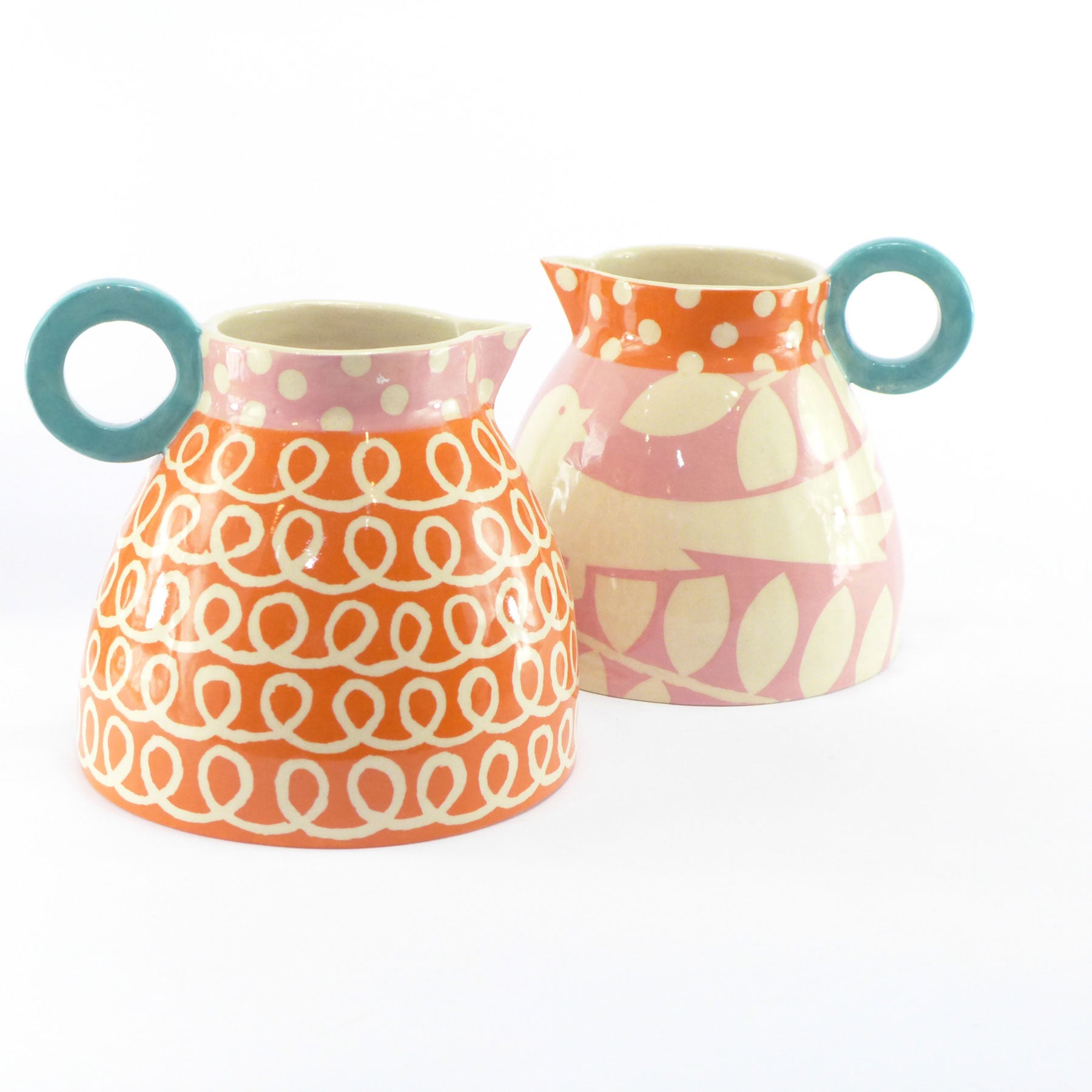 Each piece is hand built from slabs of clay and decorated using hand cut stencil decoration. I have a strong belief that Ken's work makes you happy.