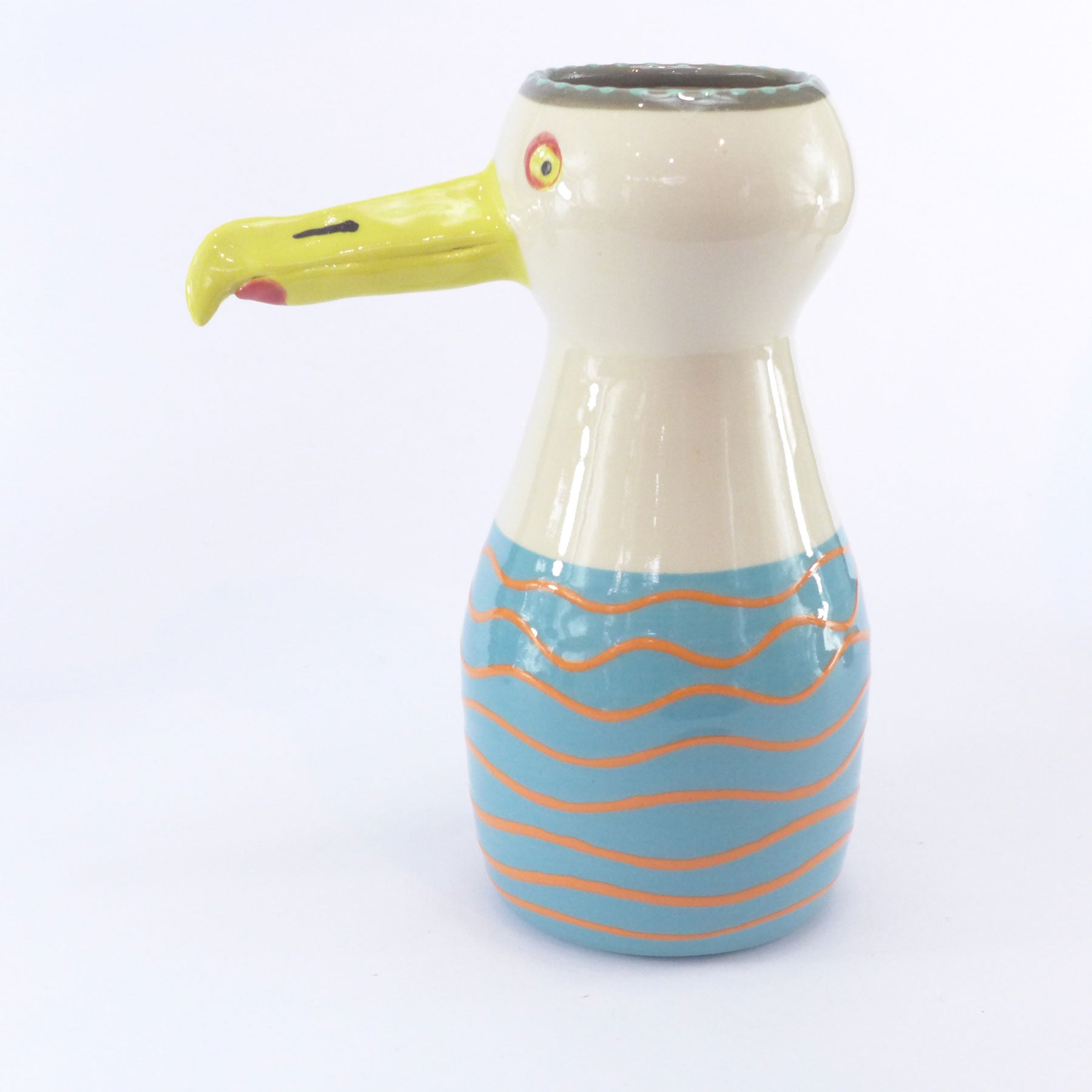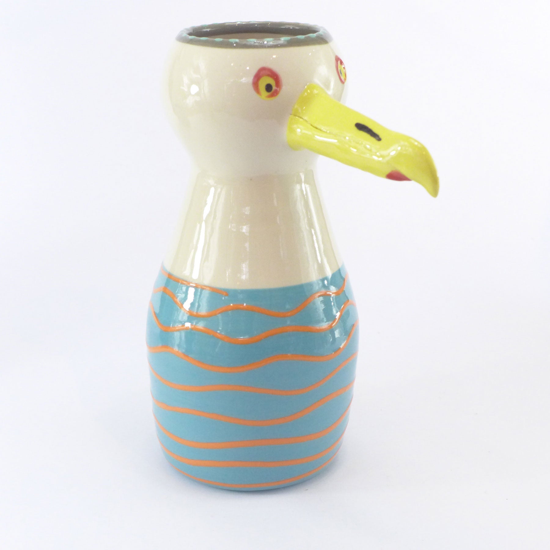 Lincoln's work is wonderfully tactile and fired to low stoneware is both dishwasher and microwave proof. This will make you smile every time you look at it - with flowers or without