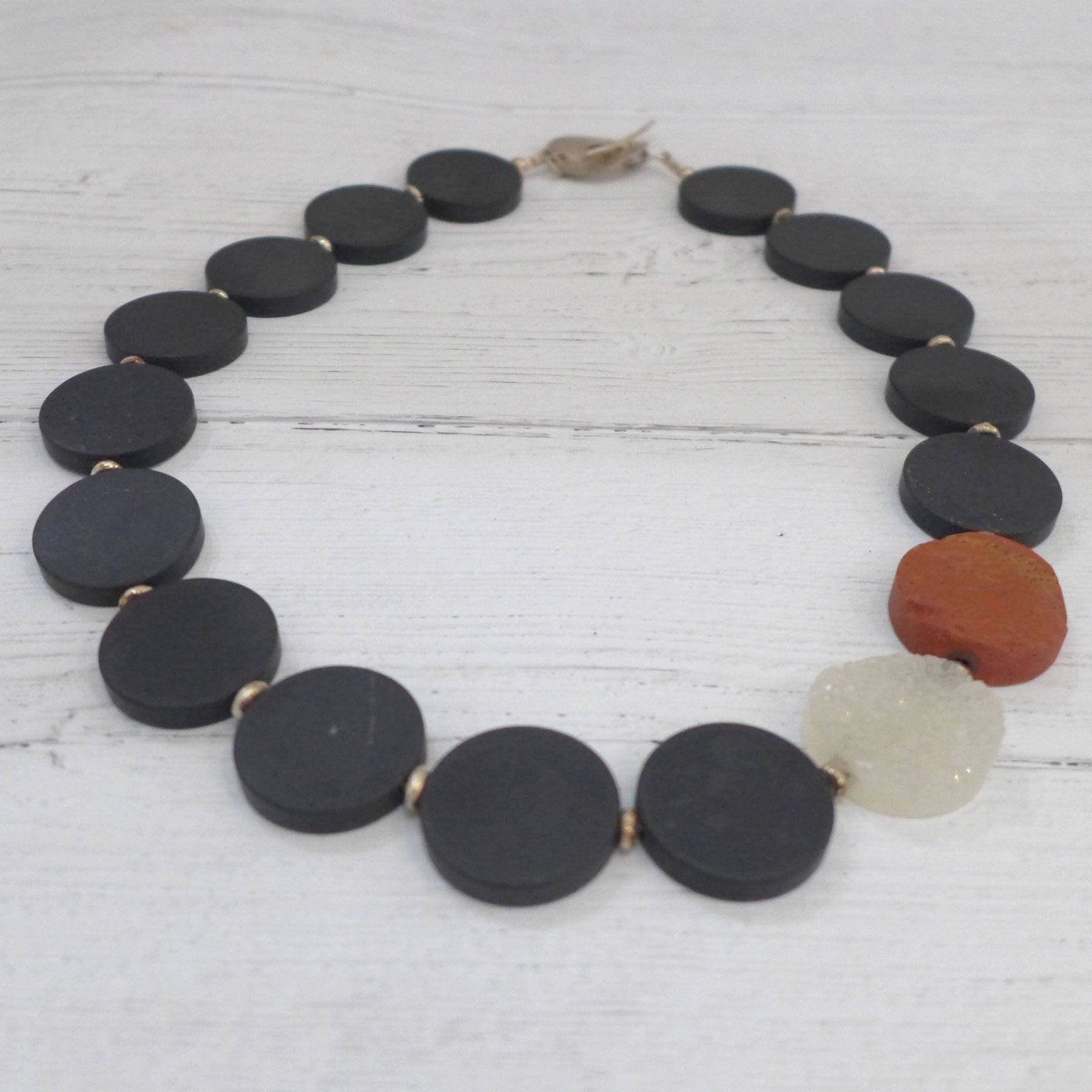 Tessa's necklaces are mostly individual and unique, with a few exceptions where designs and stones can be repeated. They appeal to women who are interested in statement jewellery and appreciate the lovely stones, good quality clasps. The stones in her necklaces are never positioned in the obvious way, something that makes them even more special.