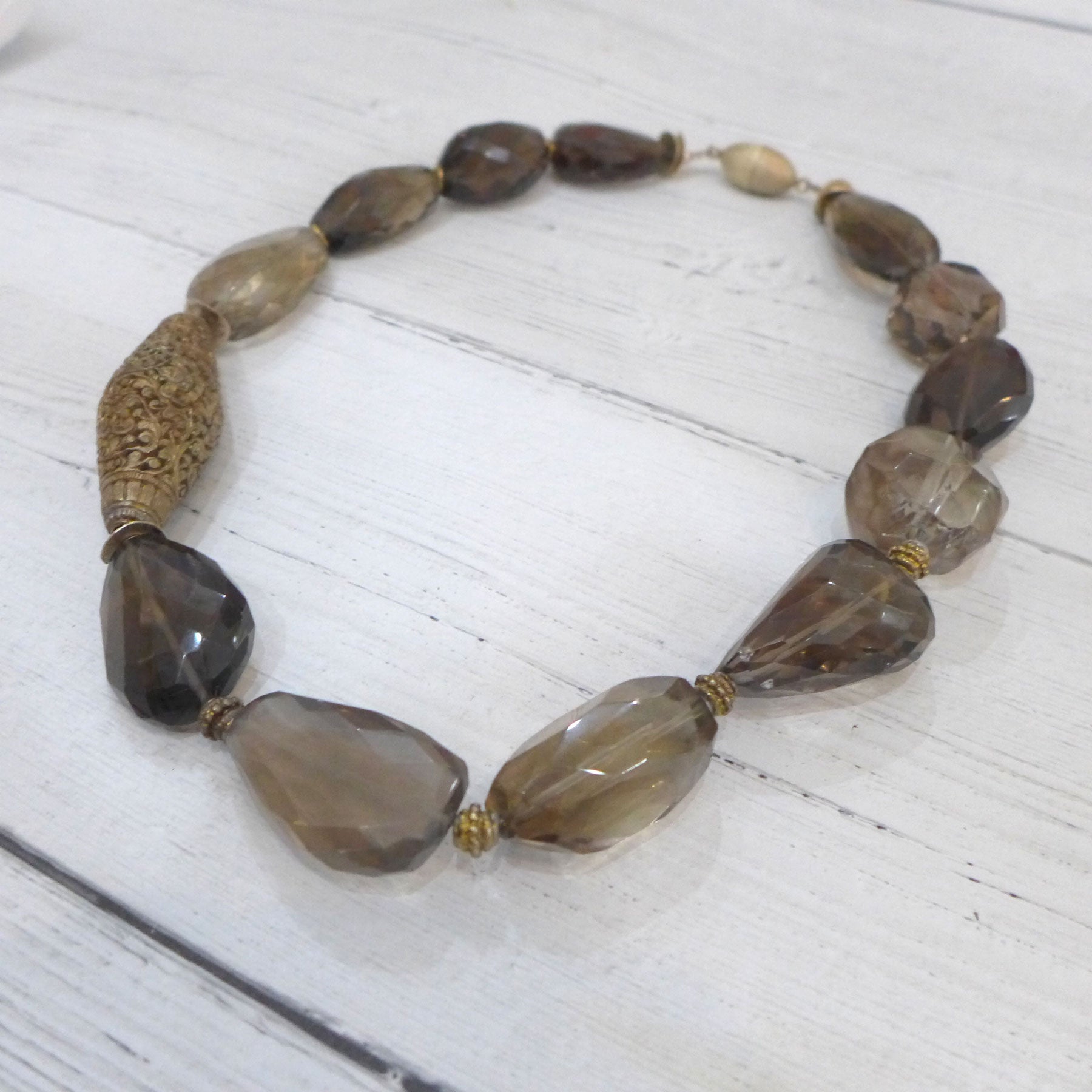 Smokey Quartz and gold plated silver necklace Rokz 8